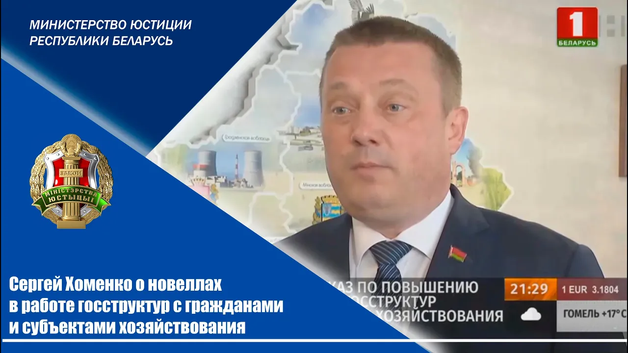 02:06Сергей Хоменко о новеллах в работе госструктур с гражданами и субъектами хозяйствованияМинистерство юстиции Республики Беларусь08.07.2023