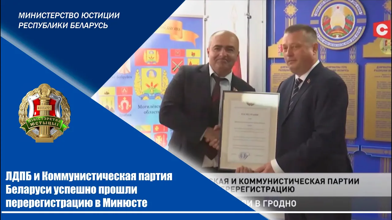 02:06ЛДПБ и Коммунистическая партия Беларуси успешно прошли перерегистрацию в МинюстеМинистерство юстиции Республики Беларусь08.07.2023