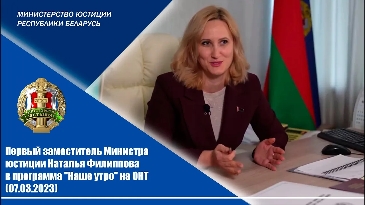 04:15Первый заместитель Министра юстиции Наталья Филиппова в программа "Наше утро" на ОНТ (07.03.2023)Министерство юстиции Республики Беларусь07.03.2023