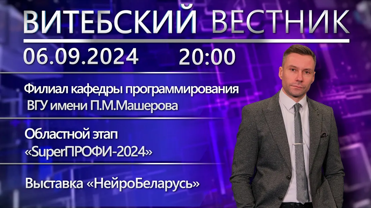 16:54Витебский вестник. Новости: филиал кафедры программирования, «SuperПРОФИ-2024», «НейроБеларусь»Беларусь 4 Витебск | Телерадиокомпания «Витебск»06.09.2024