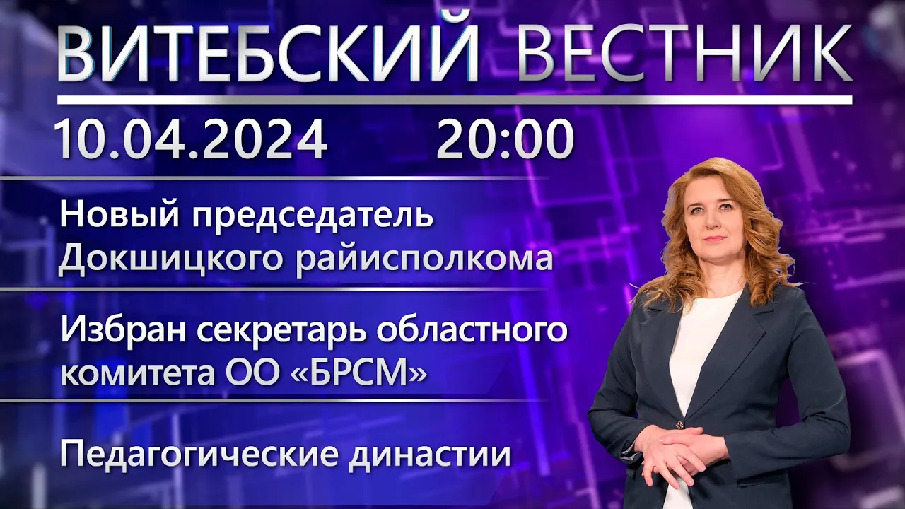17:15Витебский вестник. Новости: в Докшицах новый председатель, лидер БРСМ, педагогические династии.Беларусь 4 Витебск | Телерадиокомпания «Витебск»10.04.2024