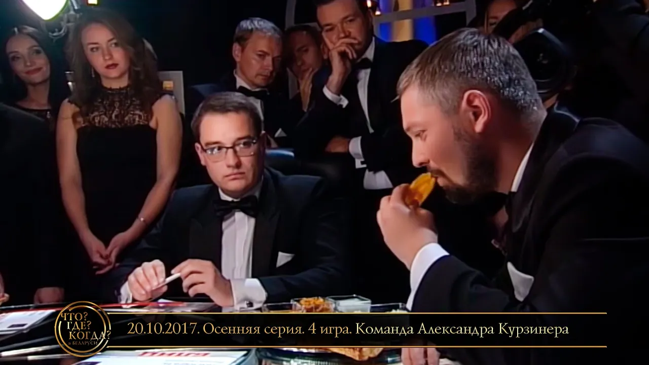 01:08:35«Что? Где? Когда?» в Беларуси. 9 сезон. Осенняя серия. 4 игра. Команда Курзинера // 20.10.2017«Что? Где? Когда?» в Беларуси (Телеканал ОНТ)20.10.2017