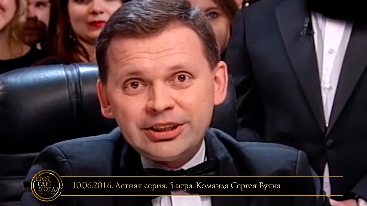 01:02:13«Что? Где? Когда?» в Беларуси. 1 сезон. Летняя серия. 1 игра. Команда Сергея Буяна // 09.06.2009«Что? Где? Когда?» в Беларуси (Телеканал ОНТ)20.09.2016