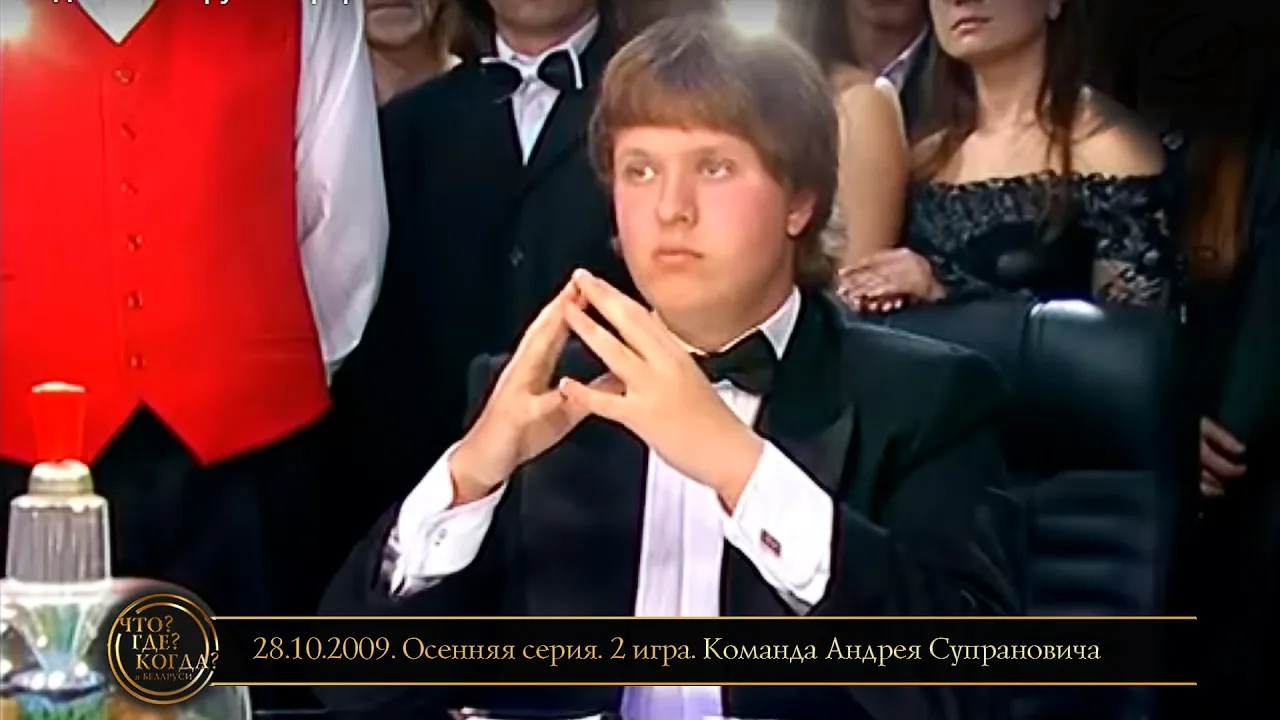 01:04:12«Что? Где? Когда?» в Беларуси. 1 сезон. Осенняя серия. 2 игра. Команда Супрановича // 28.10.2009«Что? Где? Когда?» в Беларуси (Телеканал ОНТ)20.09.2016