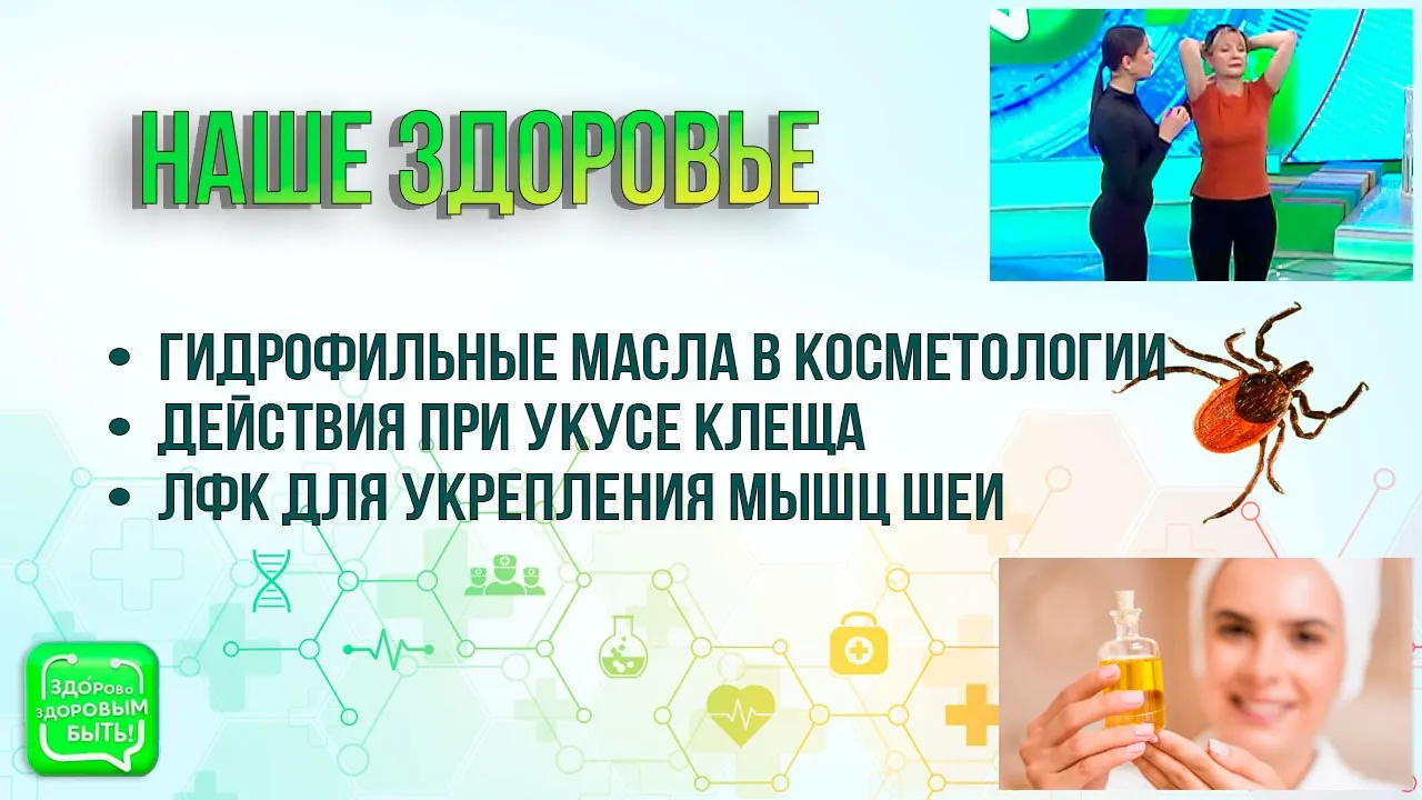 11:58Гидрофильные масла в косметологии | Действия при укусе клеща | ЛФК для укрепления мышц шеиЗдорово здоровым быть (Телеканал Беларусь 1)05.06.2024
