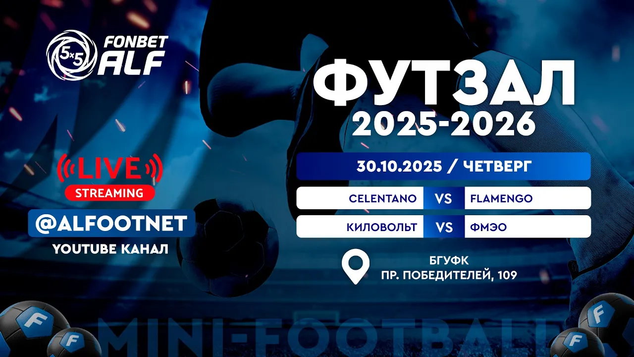 01:29:37FONBET - Чемпионат АЛФ по футзалу - 2025/2026 | 30 октября 2025Futsal Belarus30.10.2025384 прагляды