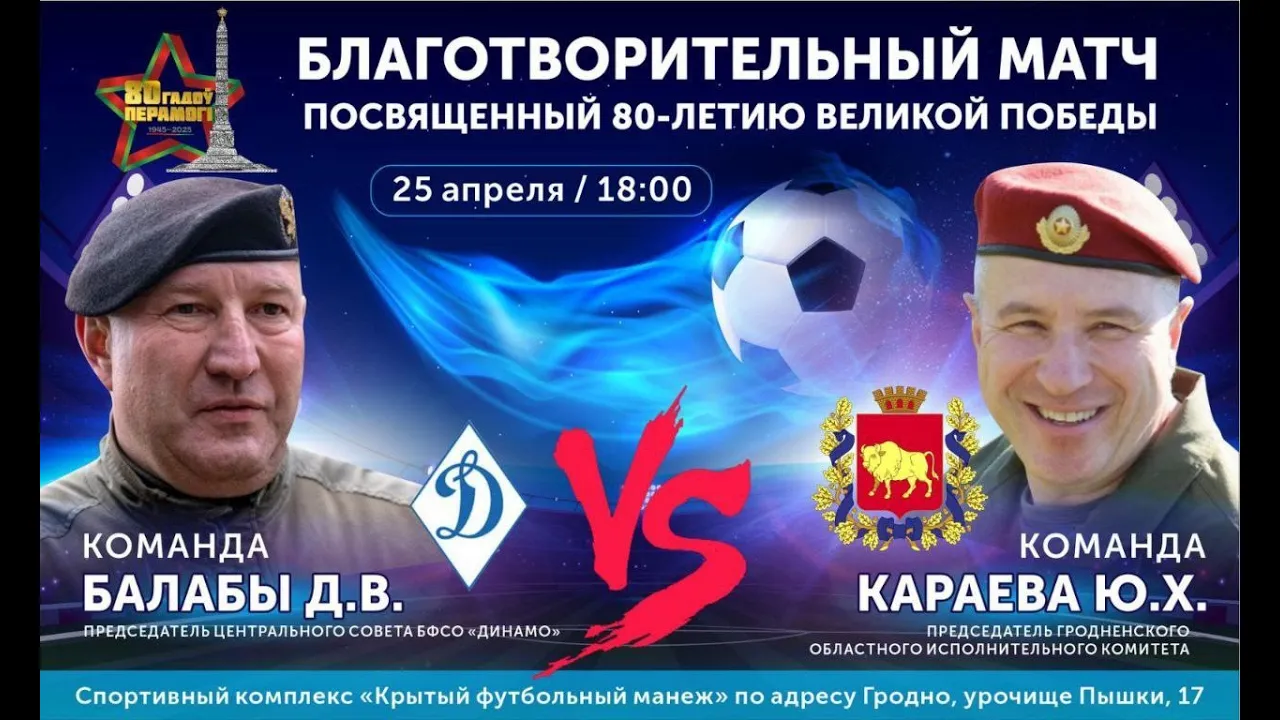 liveБлаготворительный матч по футболу, посвященный 80-летию Великой ПобедыТелеканал Гродно Плюс21.04.2025