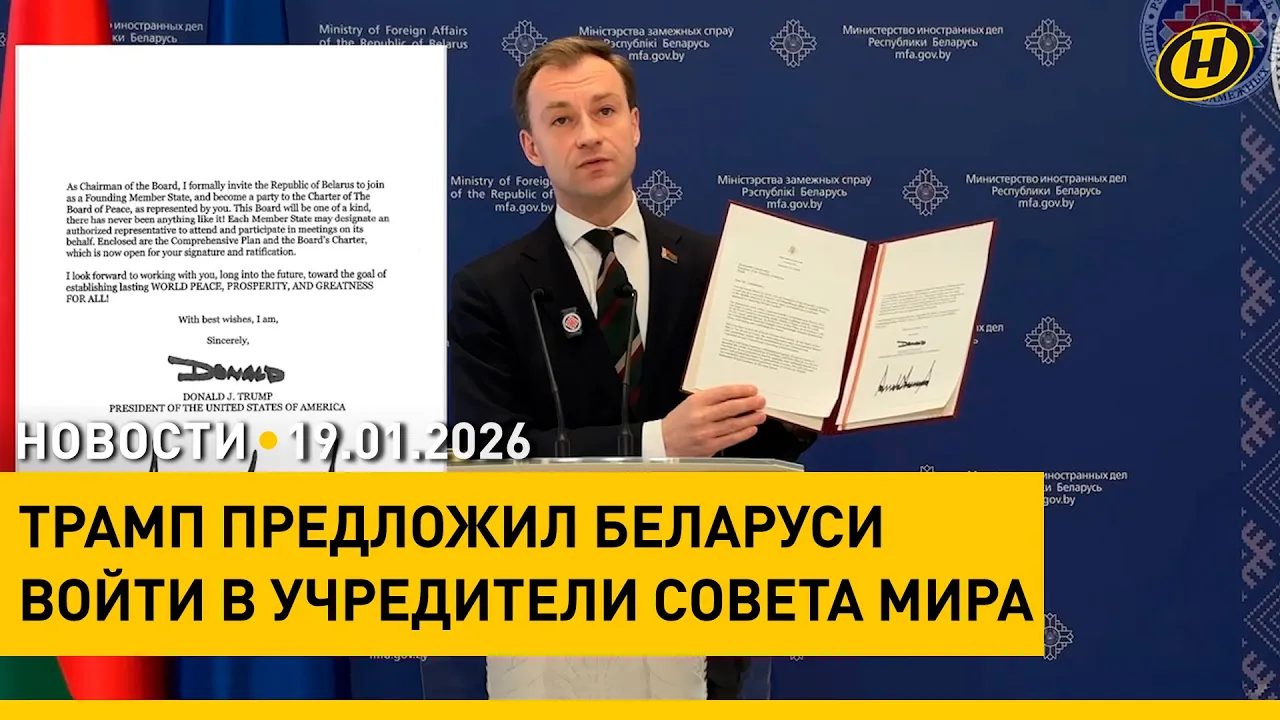 04:24Трамп обратился к Лукашенко! | Приглашение в Совет мира | Позиция Беларуси и заявление МИДCTVBY19.01.202622 023 прагляды