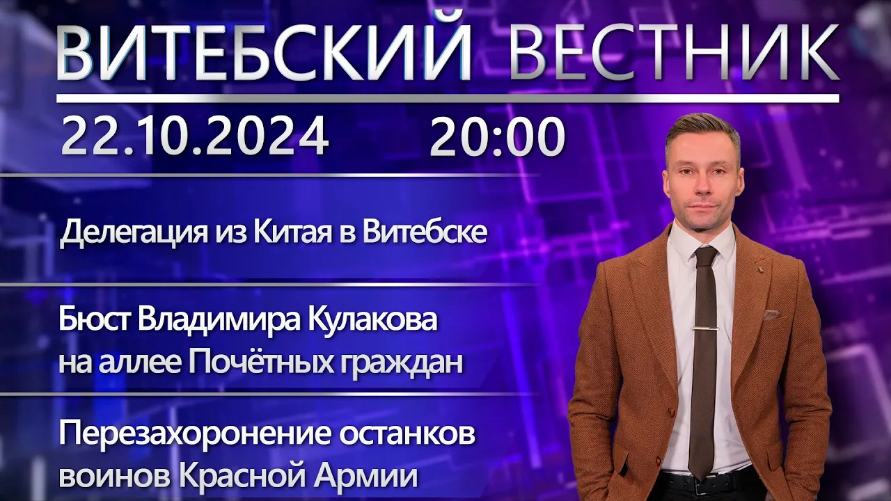 21:39Витебский вестник. Новости: делегация из Китая, увольнение десантников в запас, бюст В. КулаковаБеларусь 4 Витебск | Телерадиокомпания «Витебск»22.10.2024