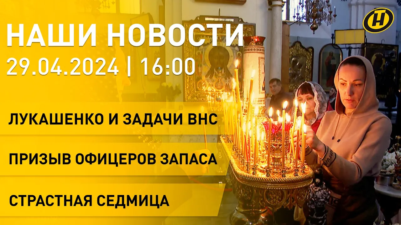 10:23Новости: Лукашенко заслушал доклад зампредседателя ВНС; призыв офицеров запаса; Страстная СедмицаТелеканал ОНТ29.04.2024