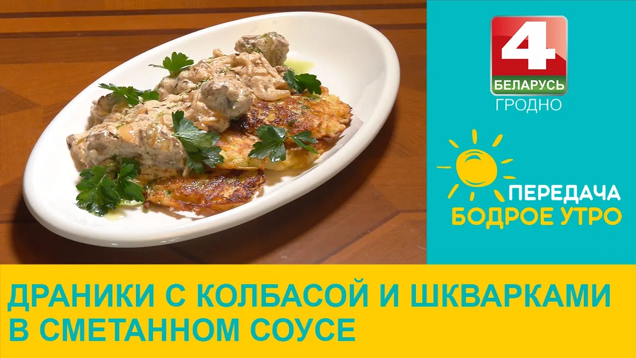 08:39Бодрое утро. Блюдо дня. Драники с колбасой и шкварками в сметанном соусе. 24.04.2023Телерадиокомпания Гродно24.04.2024102 прагляды