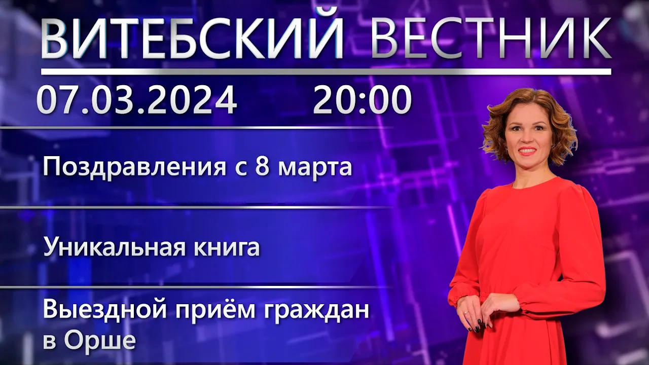 15:24Витебский вестник. Новости: выездной приём граждан в Орше, поздравили витебчанок, уникальная книга.Беларусь 4 Витебск | Телерадиокомпания «Витебск»07.03.2024