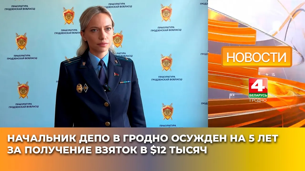 01:42Начальник депо в Гродно осужден на 5 лет за получение взяток в $12 тысячТелерадиокомпания Гродно25.09.2025717 праглядаў