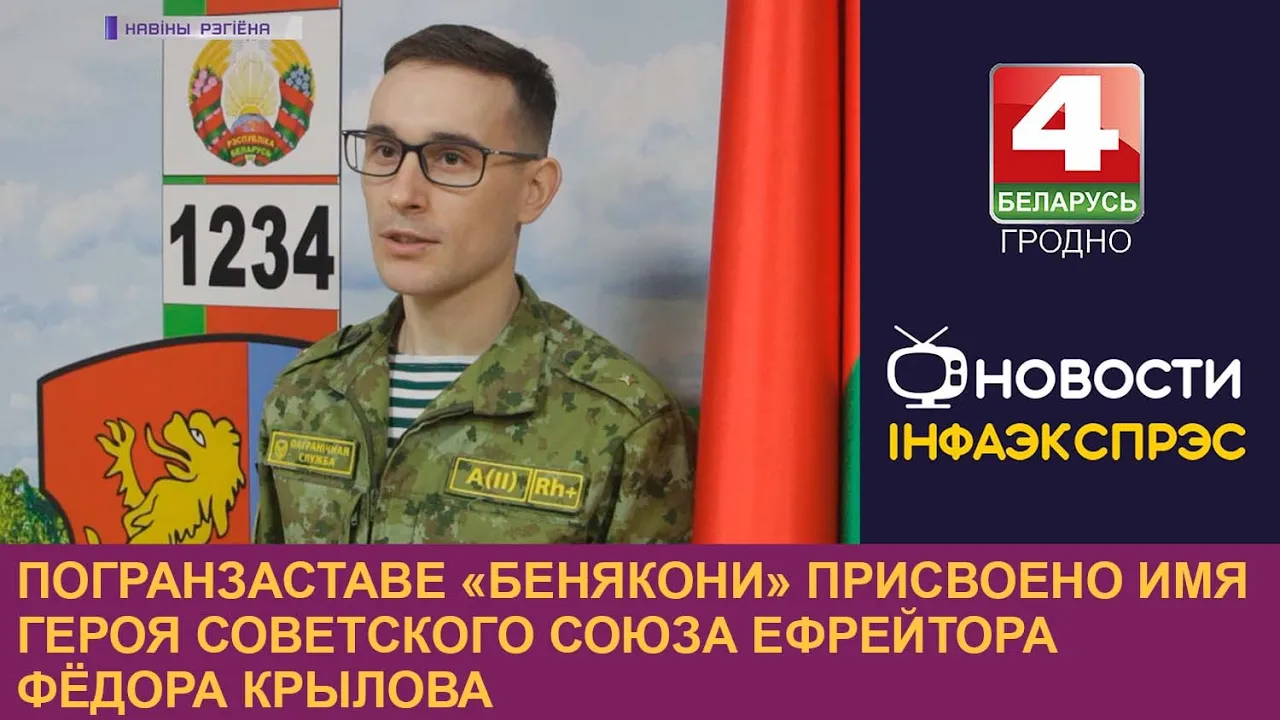 02:44Погранзаставе «Бенякони» присвоено имя Героя Советского Союза ефрейтора Фёдора КрыловаТелерадиокомпания Гродно11.01.2023155 праглядаў