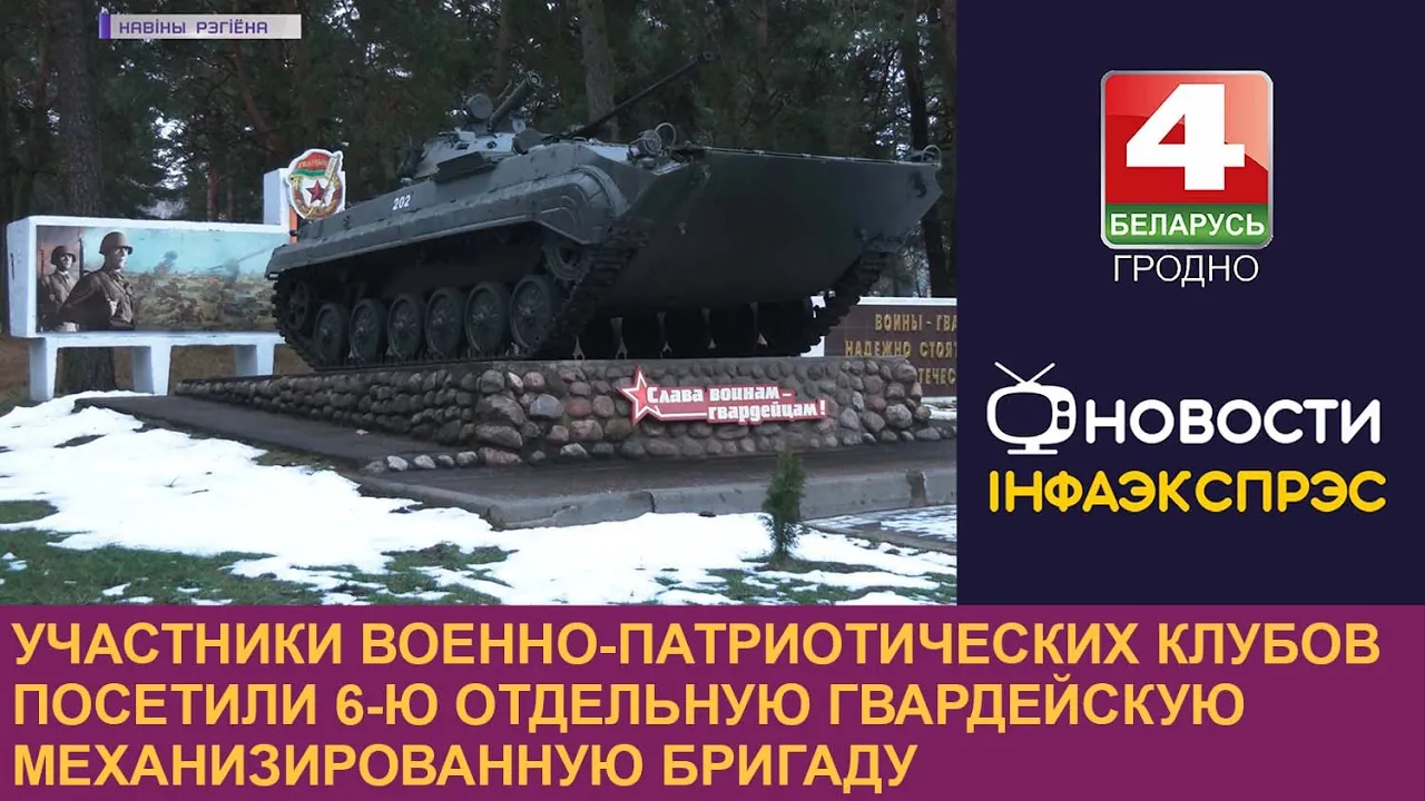 03:53Участники военно-патриотических клубов посетили 6-ю отдельную гвардейскую механизированную бригадуТелерадиокомпания Гродно29.12.2022543 прагляды