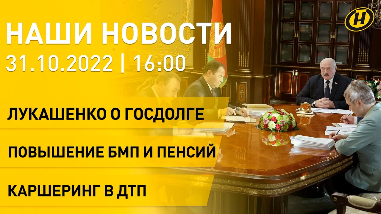 07:52Новости: Лукашенко о регулировании цен; ДТП с каршерингом; увеличение пенсий; каникулы в школеТелеканал ОНТ31.10.2022