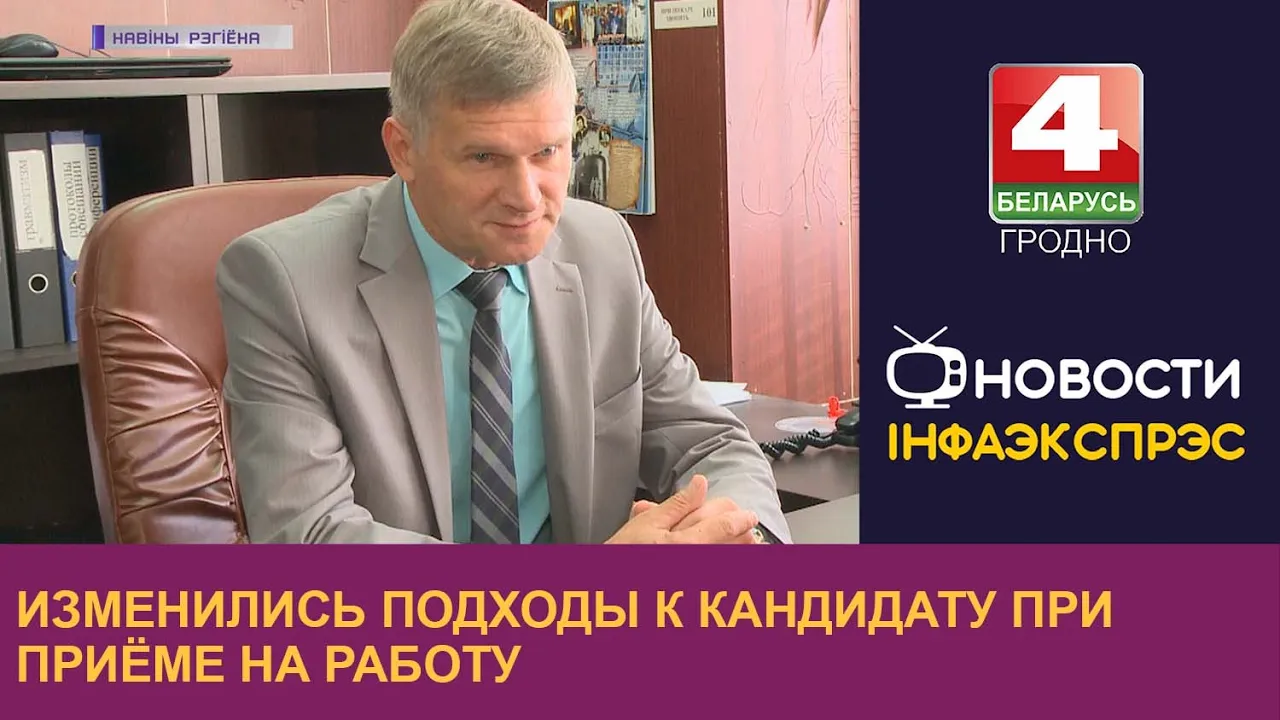 02:16Изменились подходы к кандидату при приёме на работу. | Новости Гродно 06.09.2022Телерадиокомпания Гродно06.09.2022115 праглядаў