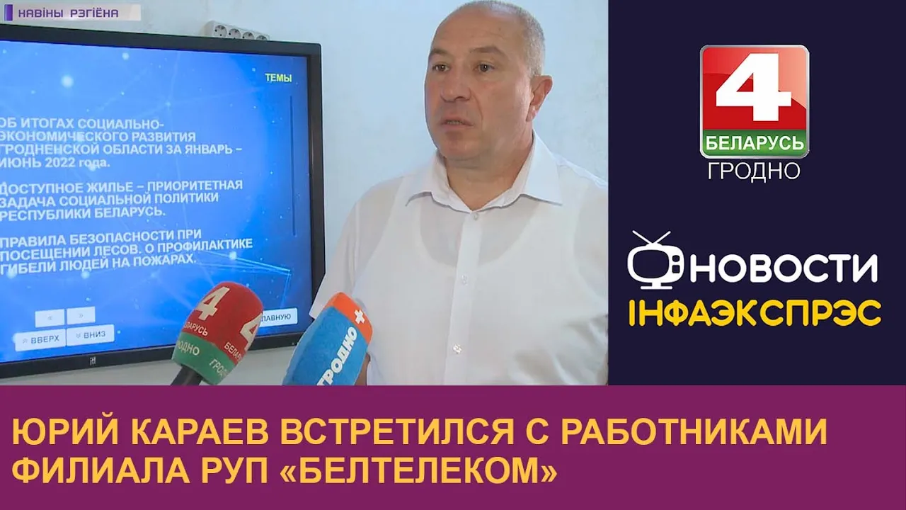 03:12Юрий Караев встретился с работниками филиала РУП «Белтелеком». | Новости Гродно 23.08.2022Телерадиокомпания Гродно23.08.2022255 праглядаў