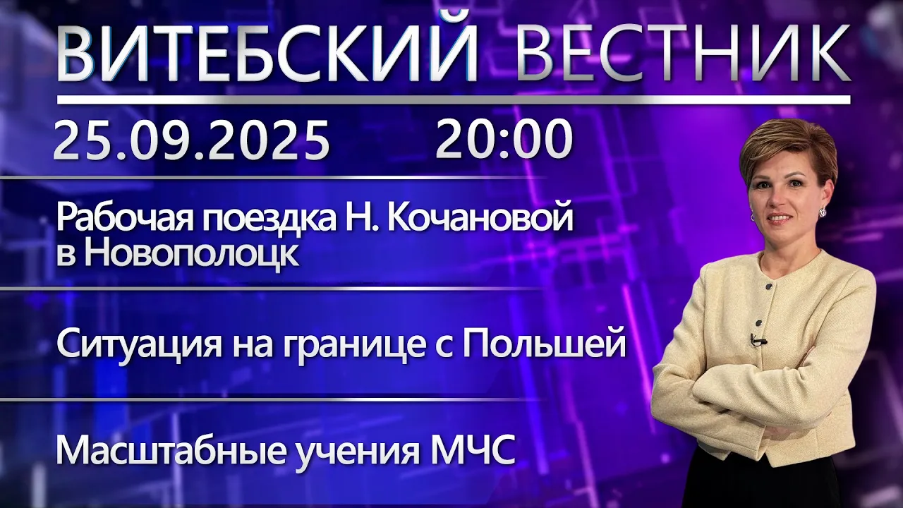 18:37Витебский вестник. Новости: Н. Кочанова в Новополоцке, ситуация на границе с Польшей, учения МЧСБеларусь 4 Витебск | Телерадиокомпания «Витебск»25.09.2025479 праглядаў