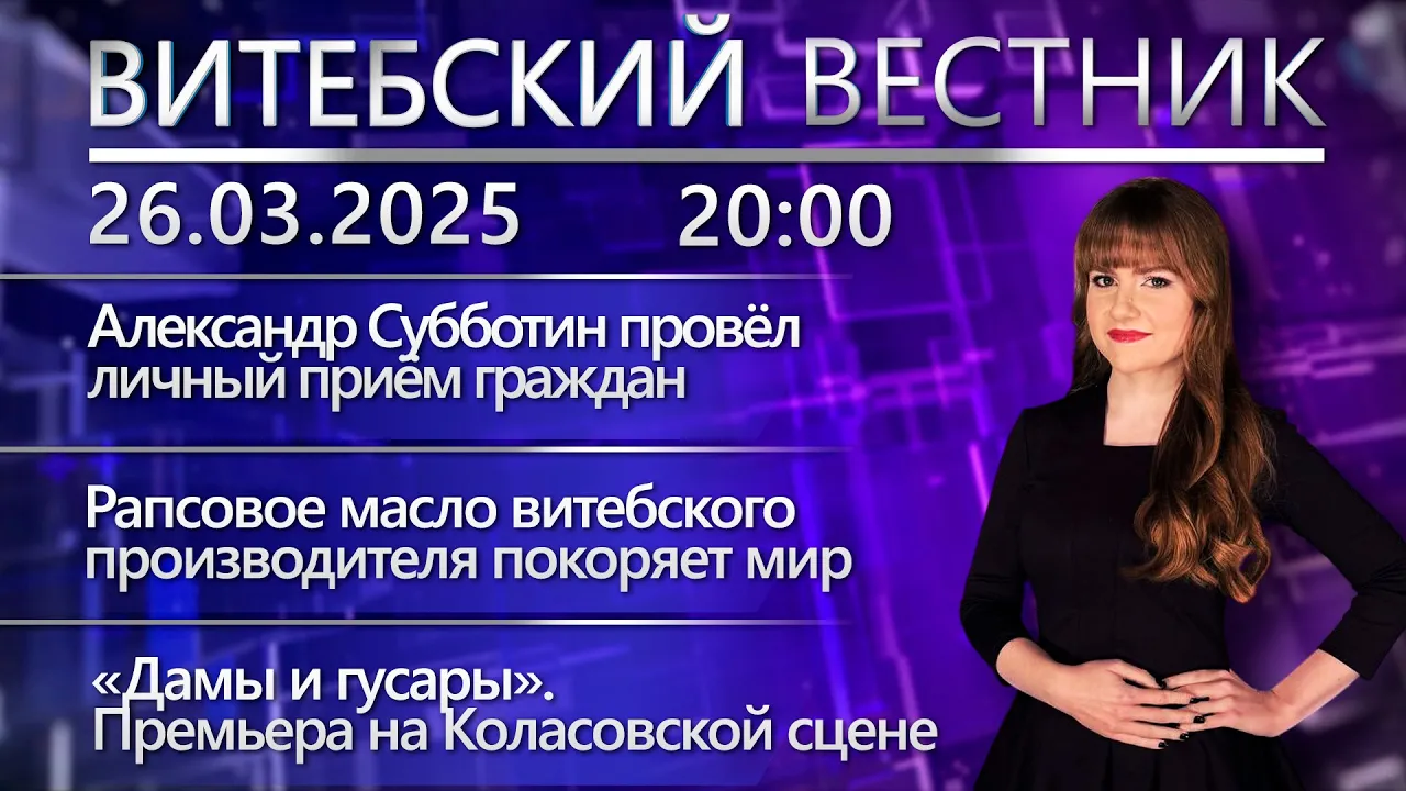 20:48Витебский вестник. Новости: Субботин провёл приём граждан, переработка рапса, премьера в театреБеларусь 4 Витебск | Телерадиокомпания «Витебск»26.03.2025