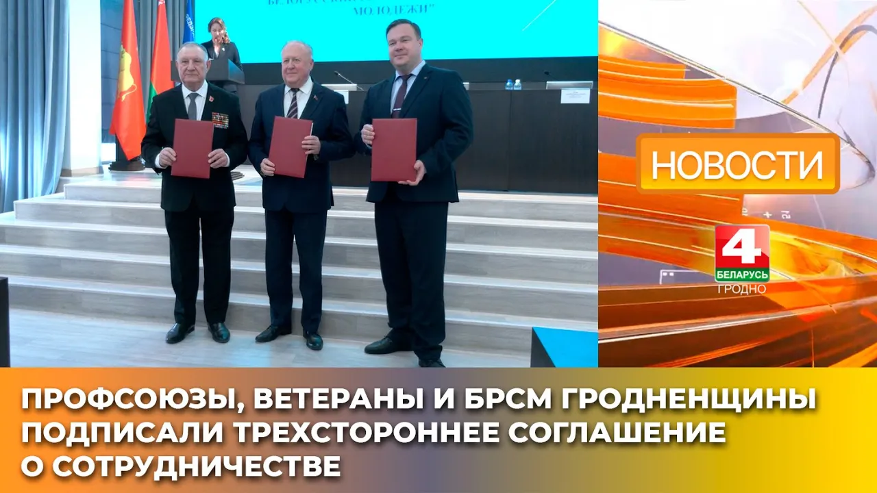 04:00Профсоюзы, ветераны и БРСМ Гродненщины подписали трехстороннее соглашение о сотрудничествеТелерадиокомпания Гродно19.03.202533 прагляды