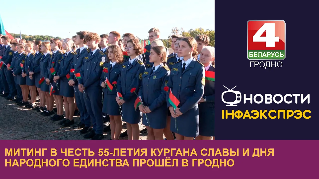 01:49Митинг в честь 55-летия Кургана Славы и Дня народного единства прошёл в Гродно. 15.09.2023Телерадиокомпания Гродно18.09.202353 прагляды