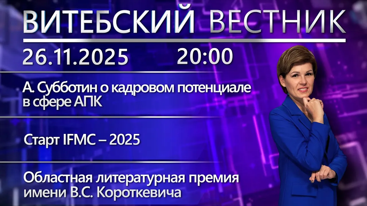 20:01Витебский вестник. Новости: молодёжь в АПК, старт IFMC, литературная премия имени В.С.КороткевичаБеларусь 4 Витебск | Телерадиокомпания «Витебск»26.11.2025469 праглядаў
