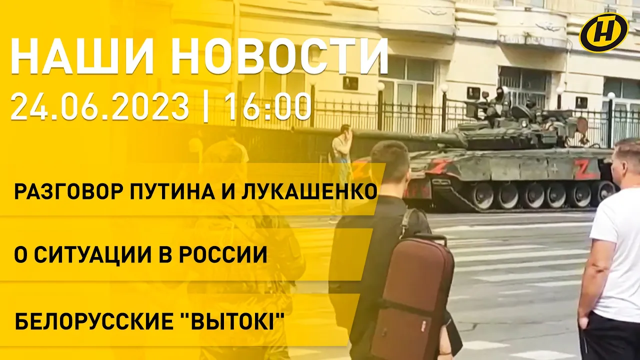 15:22Новости ОНТ: телефонный разговор Путина и Лукашенко; ситуация в России; "Вытокi. Крок да Алiмпу""Телеканал ОНТ24.06.2023