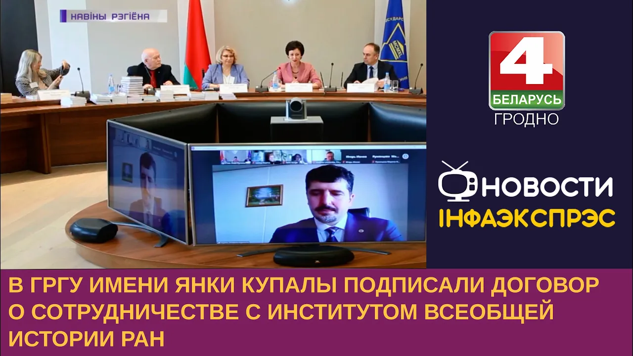 02:57В ГрГУ имени Янки Купалы подписали договор о сотрудничестве с Институтом всеобщей истории РАНТелерадиокомпания Гродно14.04.202338 праглядаў
