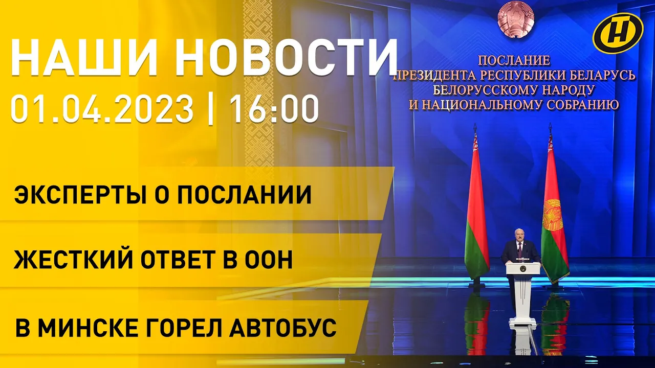 19:09Новости: Послание Лукашенко слышал весь мир; Беларусь жестко ответила в ООН; в Минске горел автобусТелеканал ОНТ01.04.2023