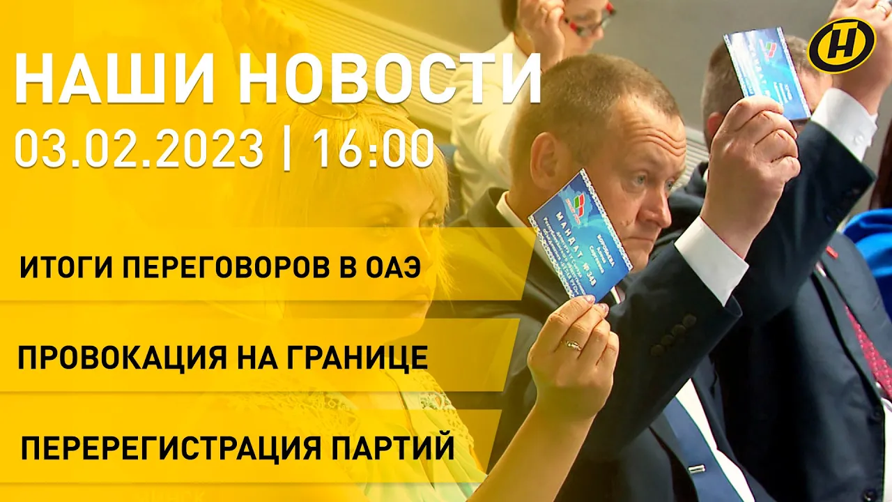 10:24Новости: итоги переговоров Минска и Абу-Даби; провокации на границе Беларуси; перерегистрация партийТелеканал ОНТ03.02.2023