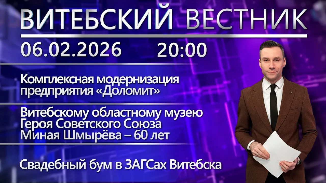 21:11Витебский вестник. Новости: модернизация «Доломита», конференция медиков, свадебный бумБеларусь 4 Витебск | Телерадиокомпания «Витебск»06.02.2026729 праглядаў